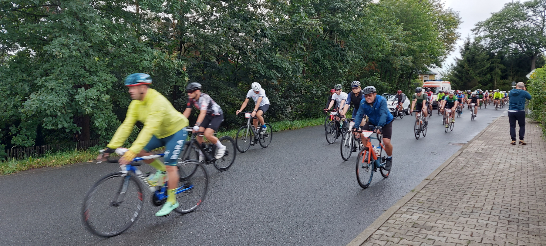 Um 8.00 Uhr ging es mit Freigabe unseres langjährigen UCI-Kommissär, Bernd Schneider, auf die angebotenen Distanzen von 78, 125 und 190 km. 56 Radler überwanden die lange Strecke und damit ca. 3250 hm.