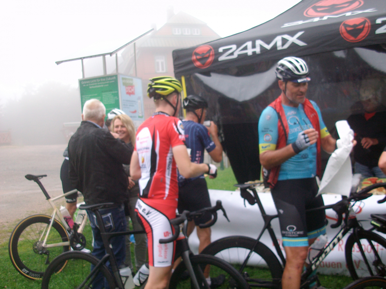 Um 8.00 Uhr ging es mit Freigabe unseres langjährigen UCI-Kommissär, Bernd Schneider, auf die angebotenen Distanzen von 78, 125 und 190 km. 56 Radler überwanden die lange Strecke und damit ca. 3250 hm.