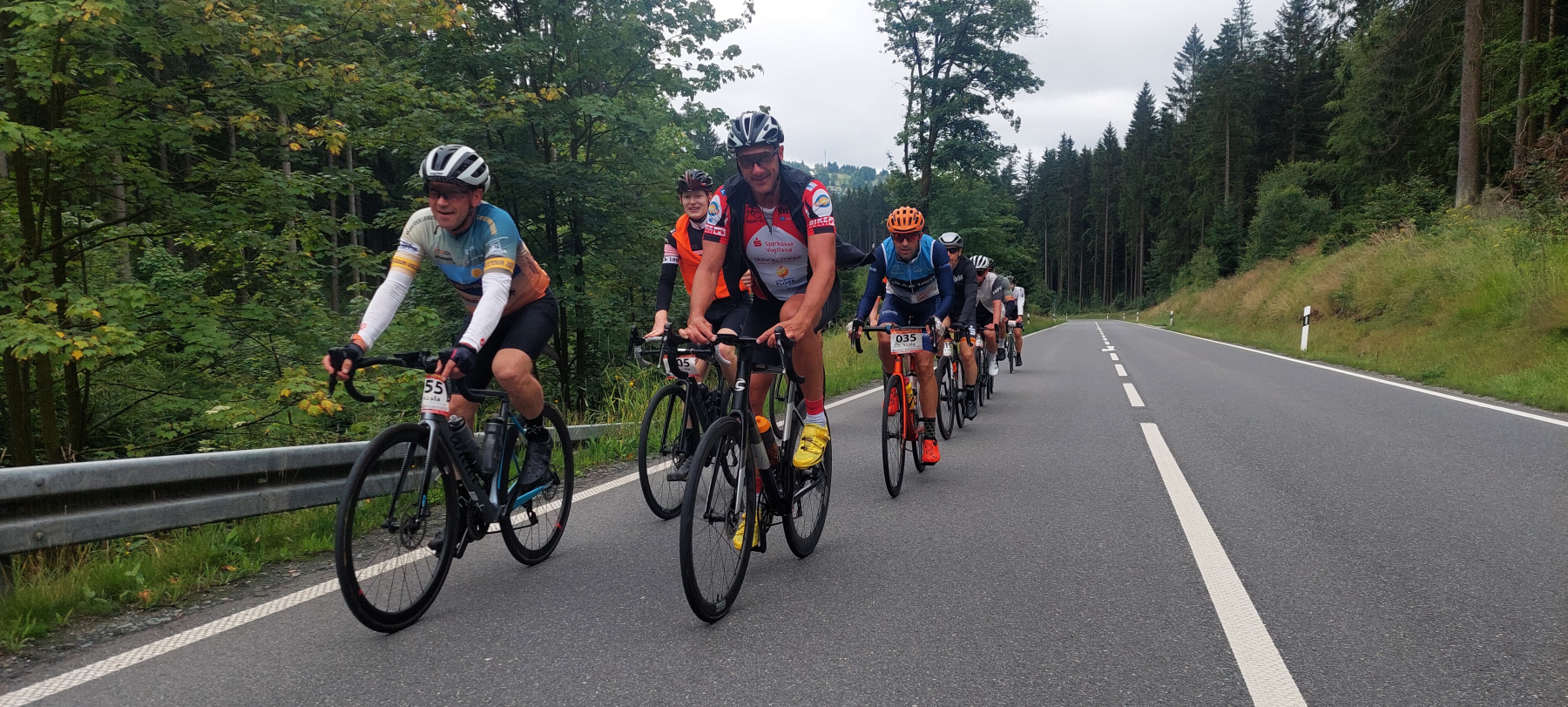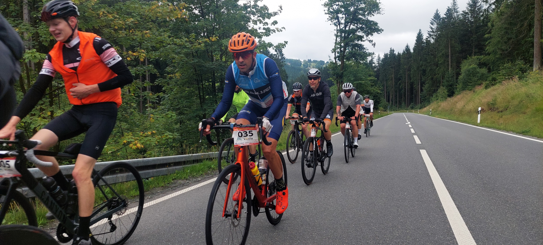 Bei guten Bedingungen machten sich dennoch 25 Radler auf die komplette Strecke über Aschberg, Auersberg bis zum Fichtelberg, wo auch einige Fahrer von der Sonne begrüßt wurden. Einer von diesen Fahrern war Oliver Hoyer, der in diesem Jahr seinen 25. Rad-Marathon zum Fichtelberg (beim Ersten war er wohl noch zu jung) gefahren ist.