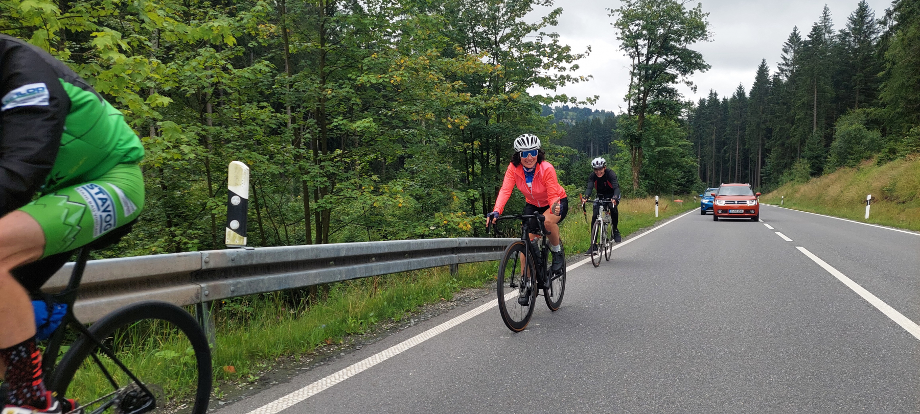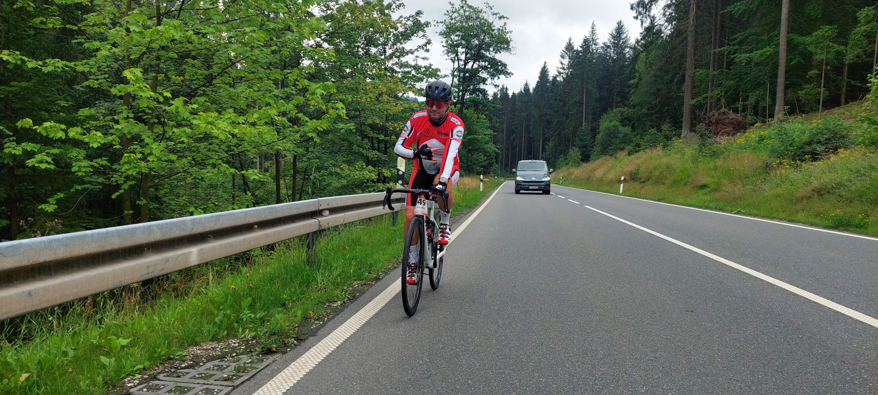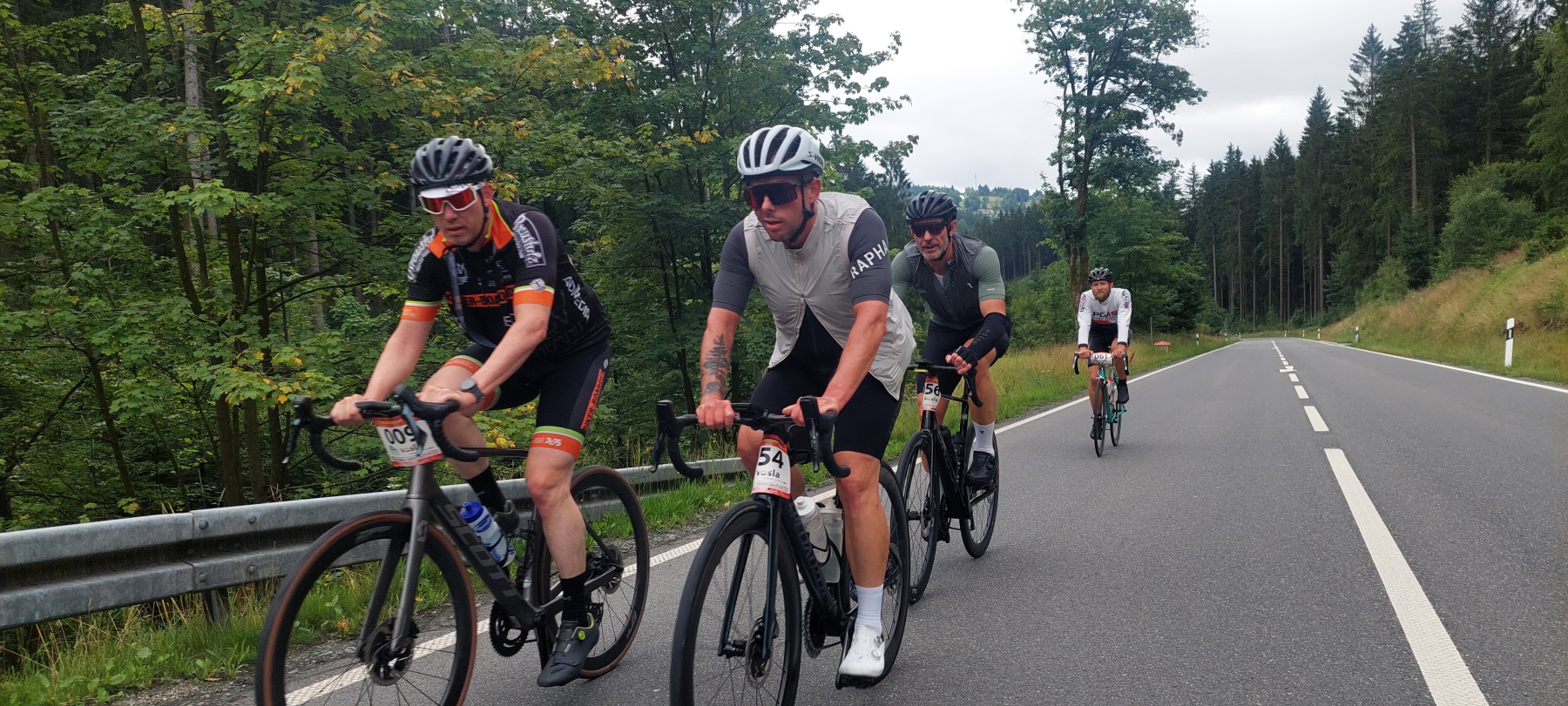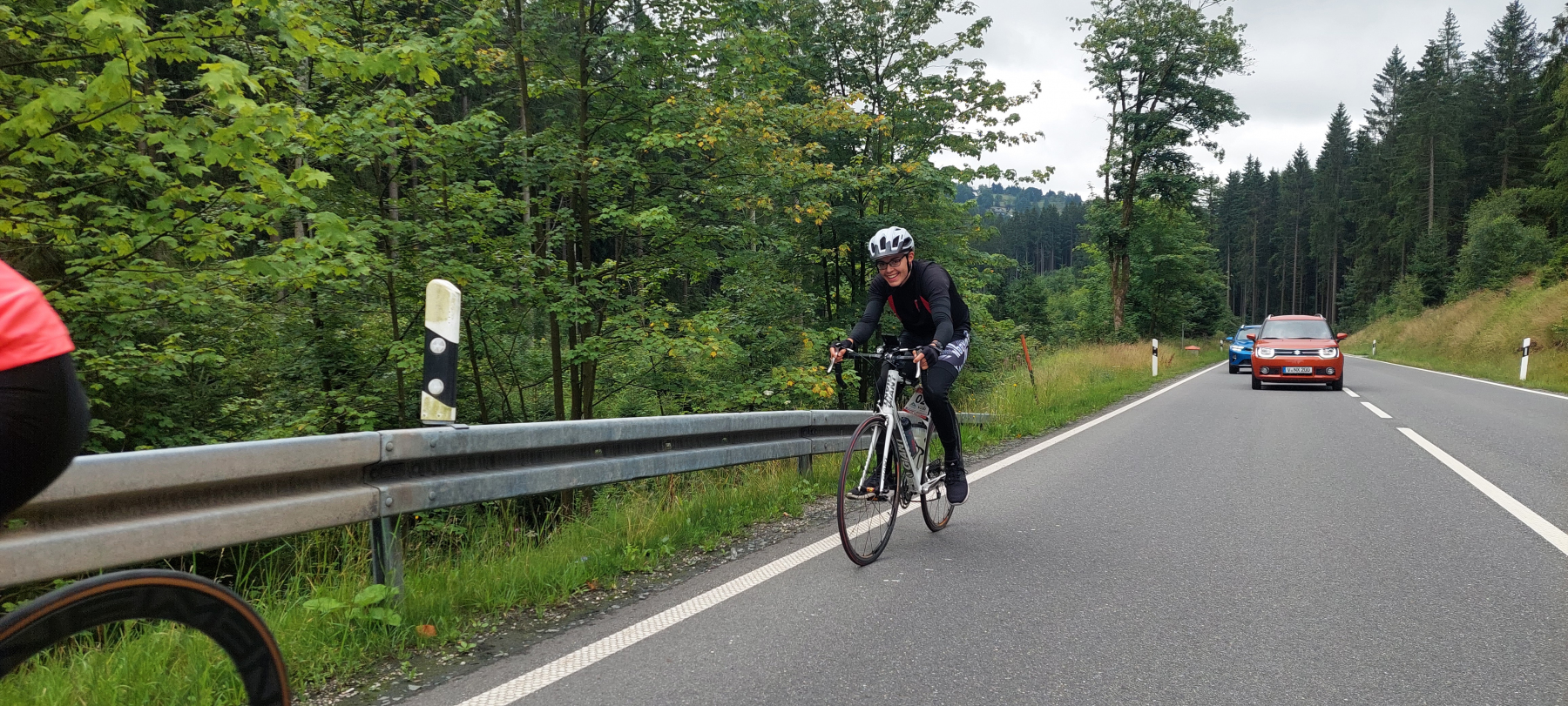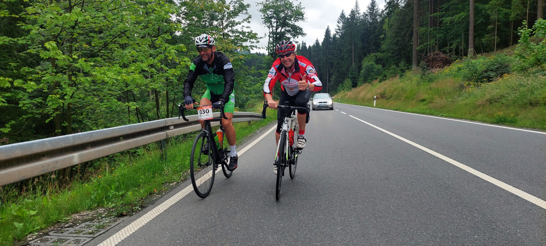 Bei guten Bedingungen machten sich dennoch 25 Radler auf die komplette Strecke über Aschberg, Auersberg bis zum Fichtelberg, wo auch einige Fahrer von der Sonne begrüßt wurden. Einer von diesen Fahrern war Oliver Hoyer, der in diesem Jahr seinen 25. Rad-Marathon zum Fichtelberg (beim Ersten war er wohl noch zu jung) gefahren ist.